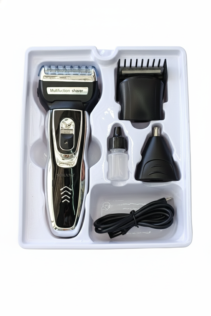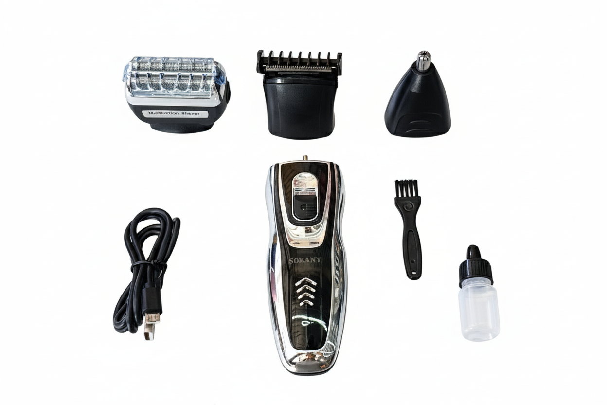 La Sokany SK-392 es una afeitadora profesional diseñada para brindar un cuidado completo y cómodo desde casa. Su sistema 3 en 1 incluye cabezales intercambiables que permiten realizar distintos tipos de recorte con total precisión: