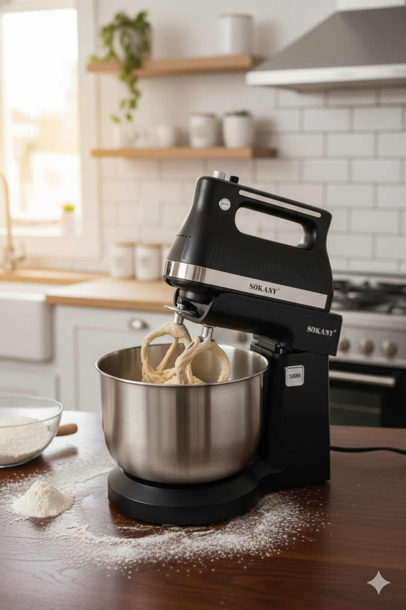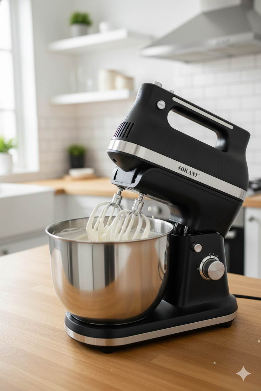 La Sokany SK-6663 es una batidora de alto rendimiento diseñada para quienes buscan potencia, capacidad y versatilidad en su cocina. Con un motor profesional de 500W, un bol de 4 litros y 5 velocidades ajustables más botón turbo, ofrece el control perfecto para mezclar, batir y amasar todo tipo de recetas.