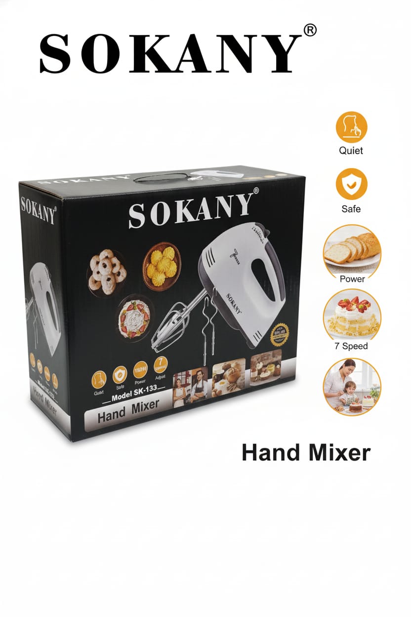 La Sokany SK-133 es una batidora ligera y eficiente, diseñada para ofrecer un funcionamiento silencioso y un control total en tus preparaciones. Con 180 W de potencia y 7 velocidades, permite ajustar la intensidad según cada receta, logrando mezclas homogéneas sin esfuerzo.