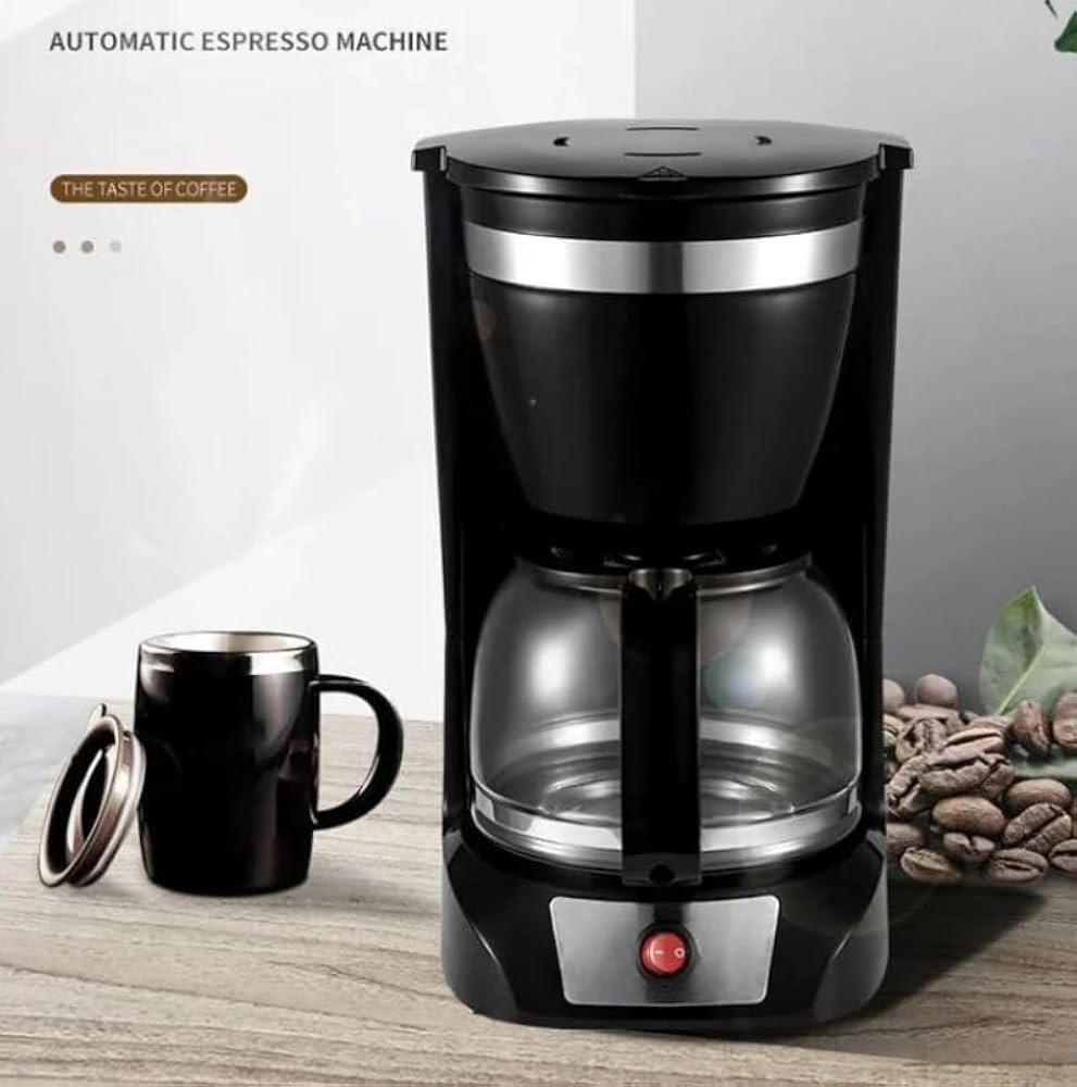 Funciones: Preparación automática de café, indicador luminoso de encendido, operación sencilla con un solo botón, filtro reutilizable y cuchara medidora incluida