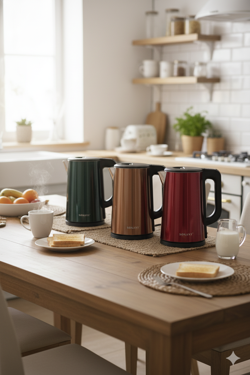 La Sokany SK-SH-1088 combina diseño moderno con un desempeño confiable. Con 2.5 litros de capacidad y 1200 W de potencia, permite calentar grandes cantidades de agua de manera rápida y eficiente, ideal para el hogar, oficina o negocios.
