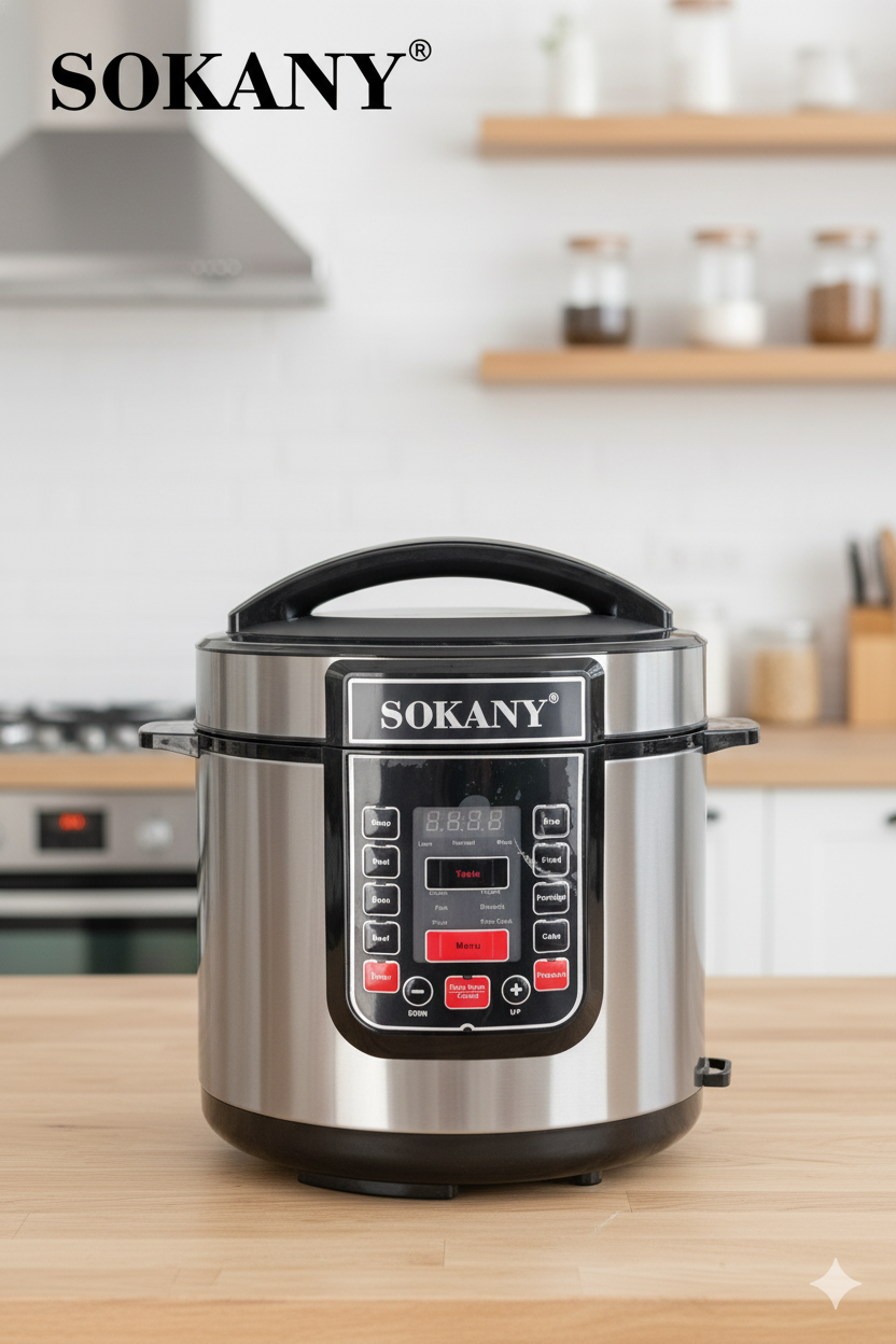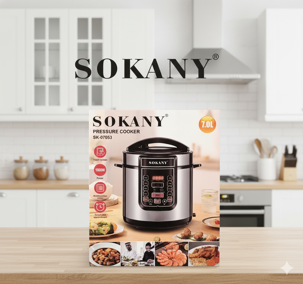 La Sokany SK-07053 es una olla de presión eléctrica diseñada para hacer tu cocina más rápida, práctica y eficiente. Con 1000 W de potencia y una capacidad de 7 litros, es ideal para preparar desde comidas diarias hasta recetas especiales sin complicaciones.